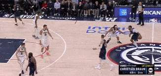 5.布劳恩坚决放投,他的突破威胁极小,对于布劳恩防守就是预判好他无球路线,保持专注力,不要出现漏人,同时做好篮板的卡位,他的篮板意识非常强。